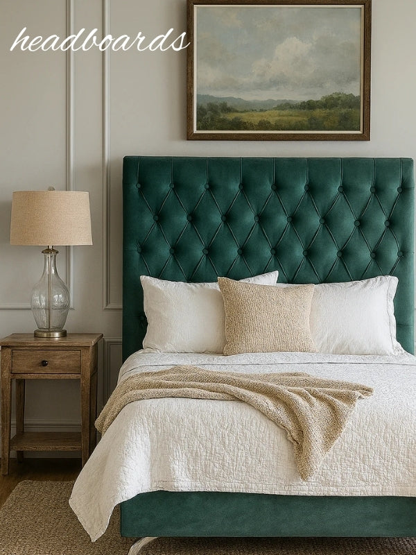 Winston Buttoned Super King Headboard - Forest Green Velvet with Crystals