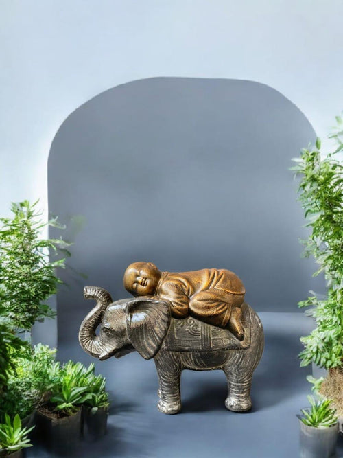 Sleeping Monk on Elephant Statue – Symbol of Peace, Protection & Harmony