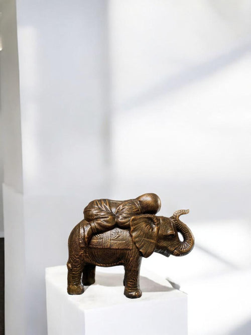 Sleeping Monk on Elephant Statue – Antique Gold Finish