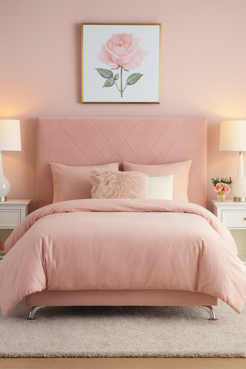 Wilson Headboard - Double Size - Light Pink Velvet - CLEARANCE PRICE