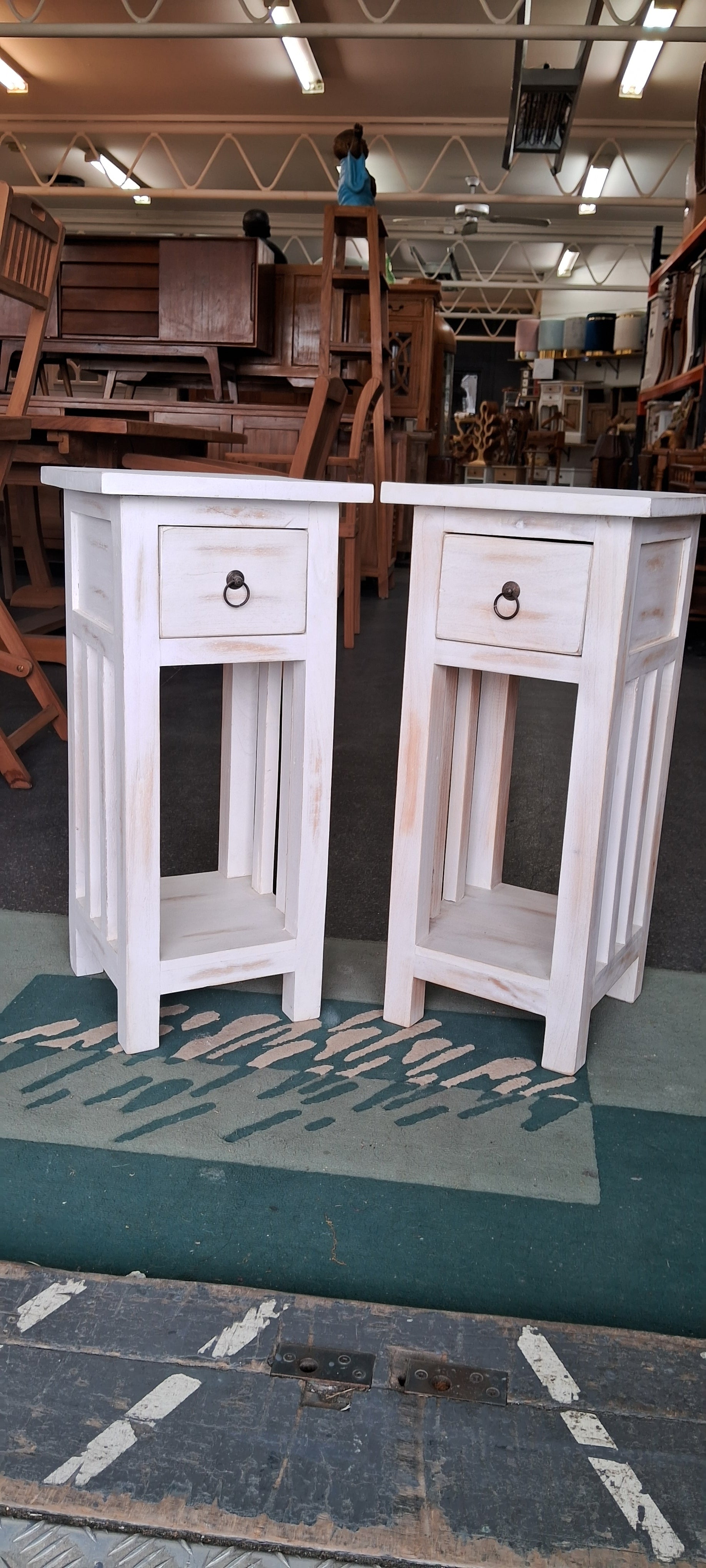 Bedside Cabinet Pair - Mindi Wood - White Wash Finish - 65cms