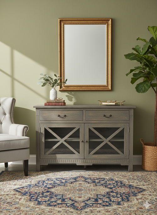 Rustic Elegance Sideboard Buffet – Weathered Grey Finish