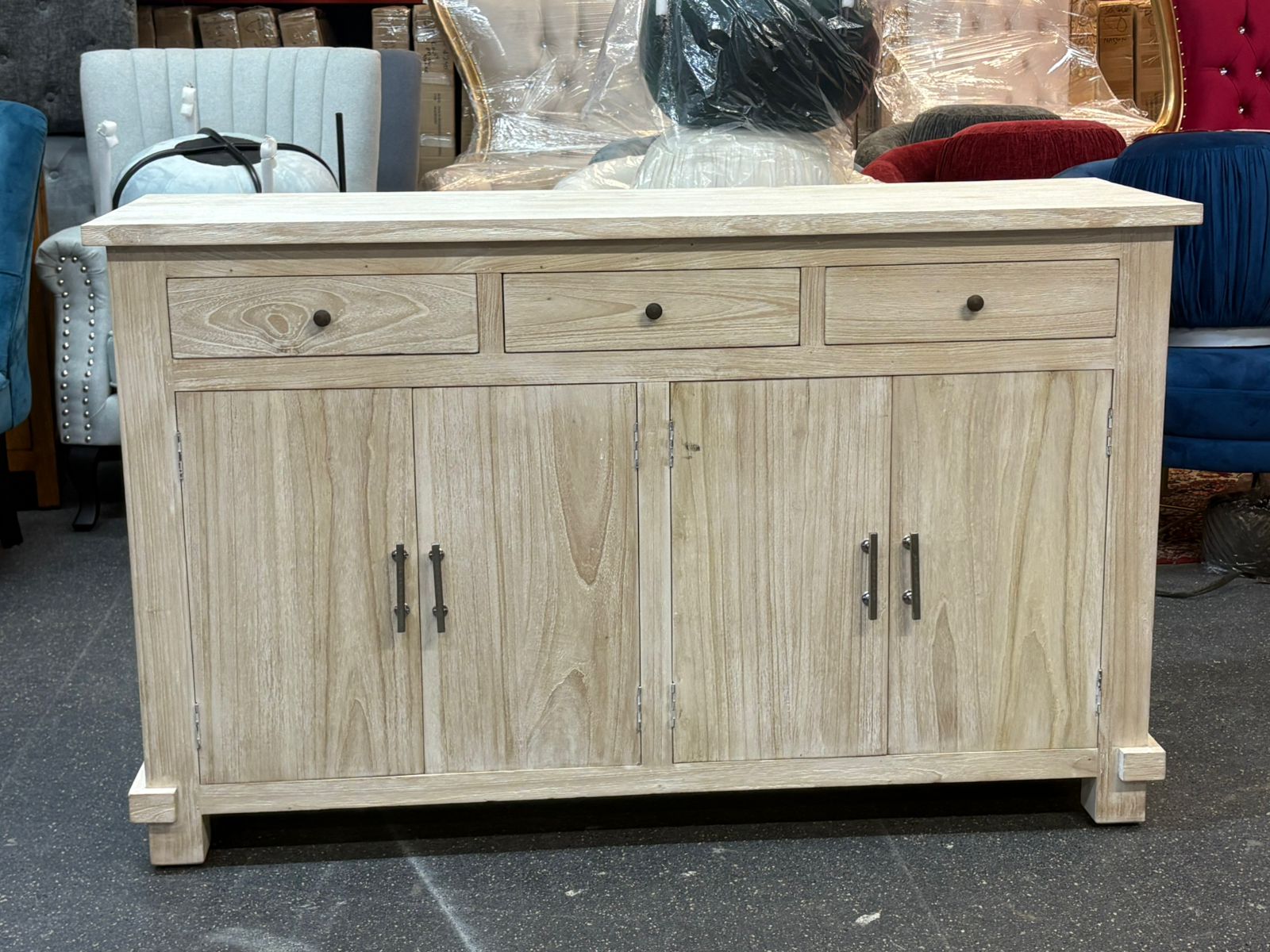 Natural Wood Sideboard Buffet – 3 Drawers & 4 Doors