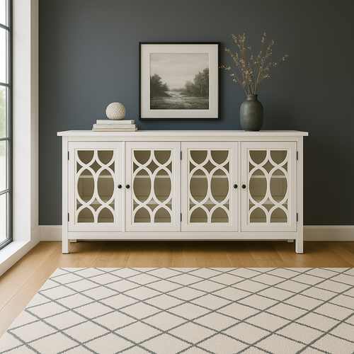 Lattice Glass Sideboard - Mindi Wood - White Finish (Factory Seconds - Clearance Price)