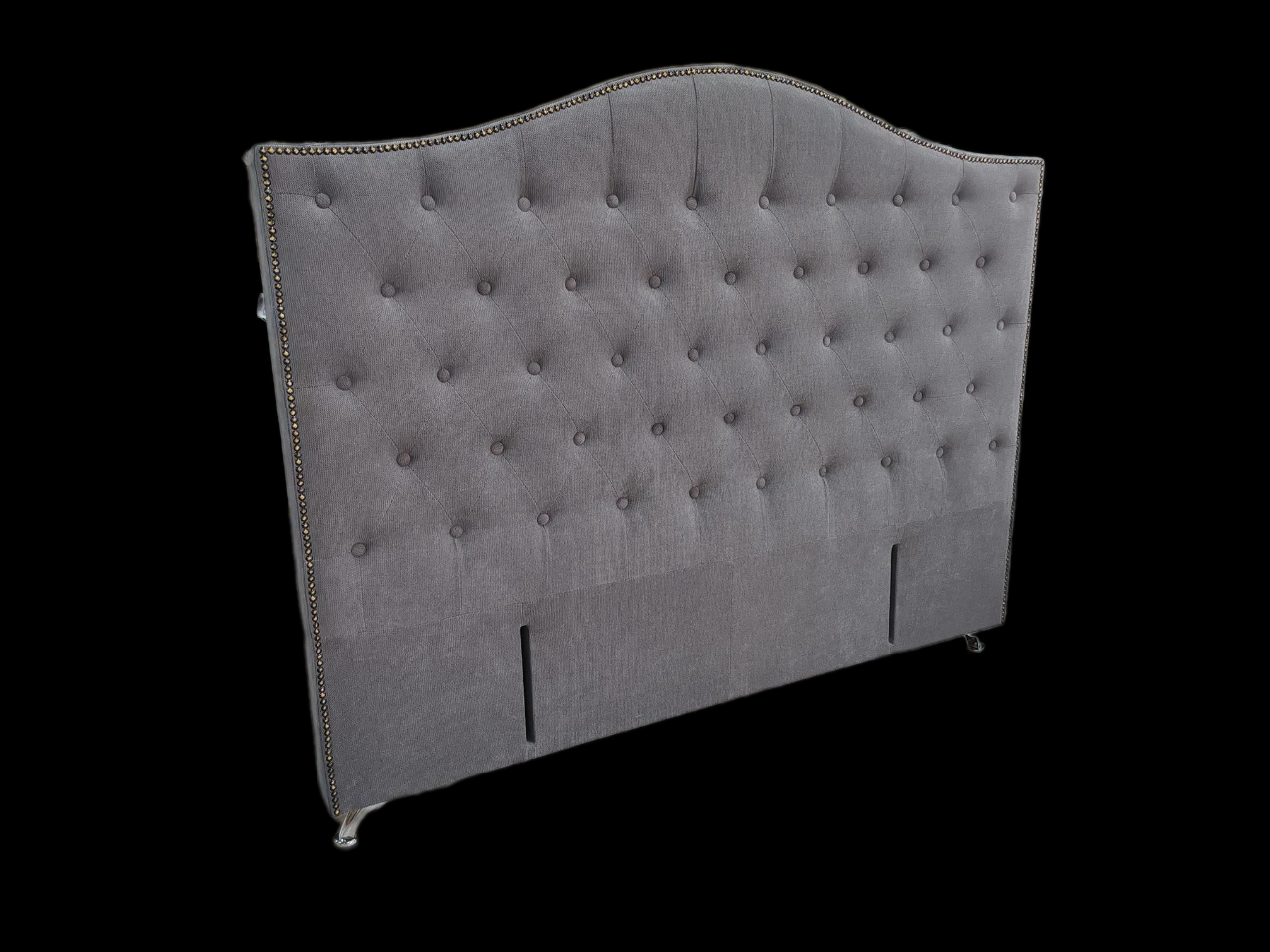 Our elegant headboards will help transform your bedroom into a haven that you want to come home to every night. This neutral pattern with a modern design gives a touch of style to your bedroom. This button-tufted french-pleated headboard fits into an array of decorative schemes. Full floor standing headboard.