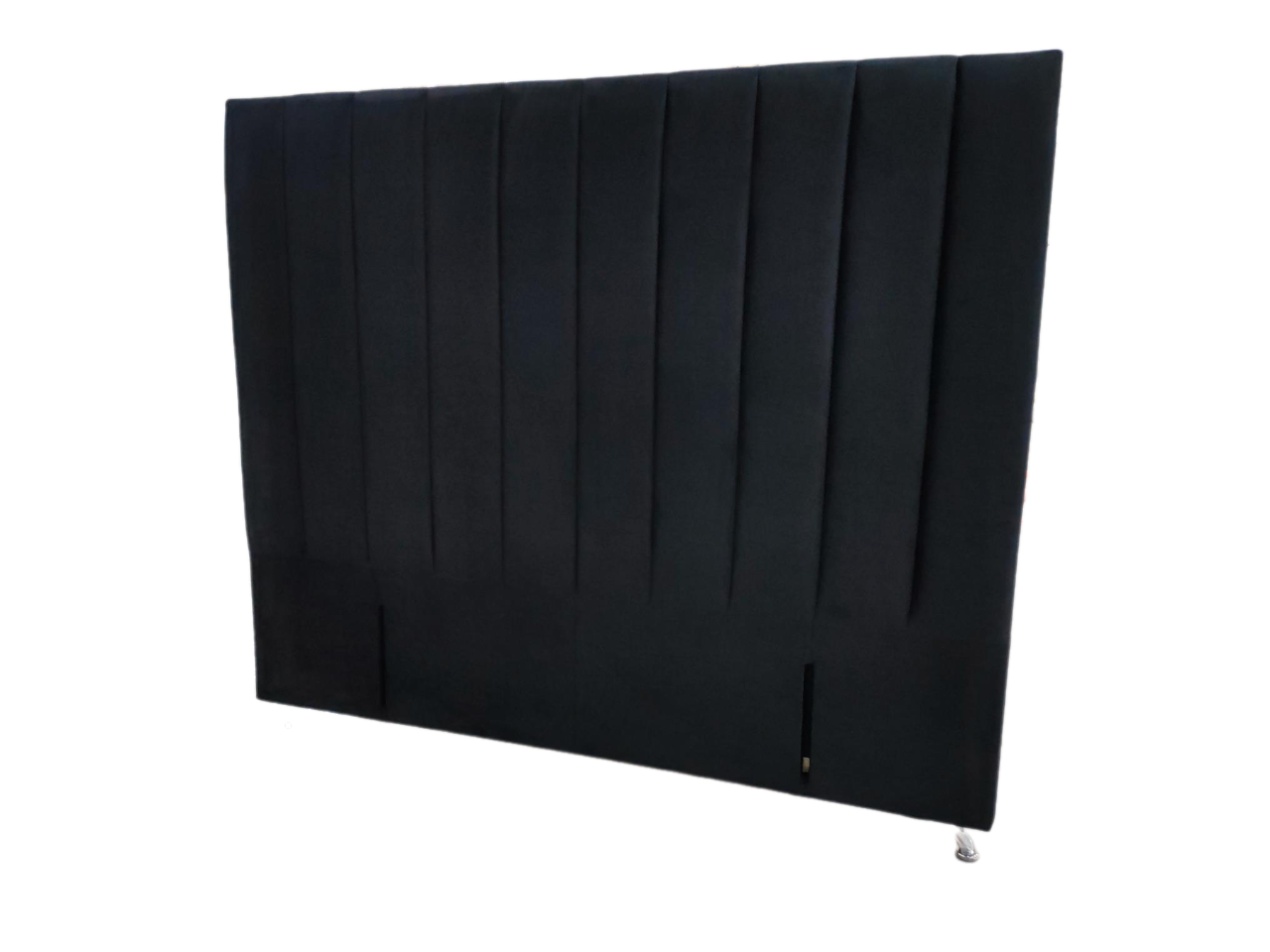Make a sleek statement with this bold black velvet headboard, featuring a structured grid-tufted design that adds depth and contemporary elegance to any bedroom. Crafted from sturdy plantation wood and upholstered in ultra-soft velvet, this piece is as durable as it is stylish. Set atop modern chrome legs, it exudes sophistication and minimalism.