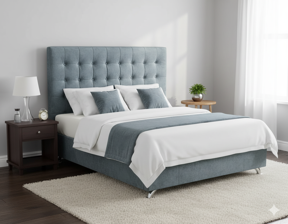 Maison Buttoned Queen Headboard - Blue Grey Velvet
