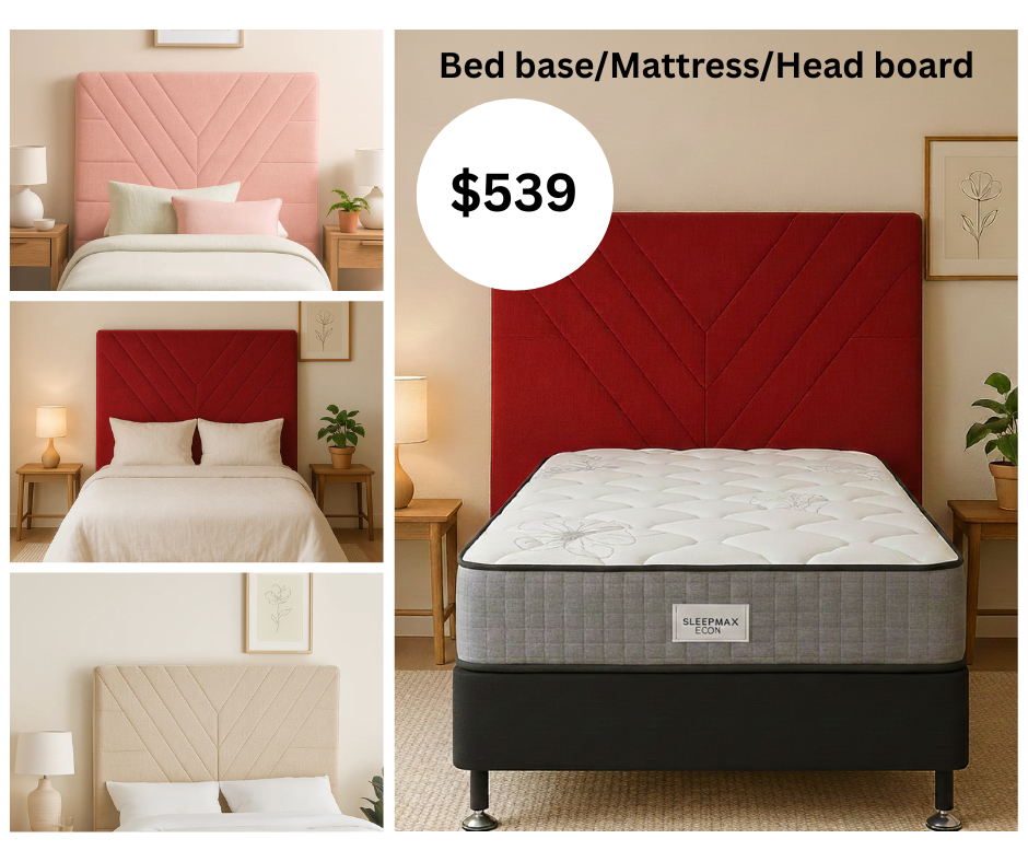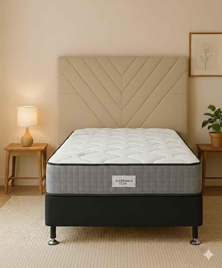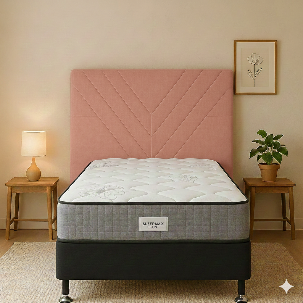 SleepMax Bonelle Spring Mattress, Base & King Single Headboard - Pink, Red, Beige