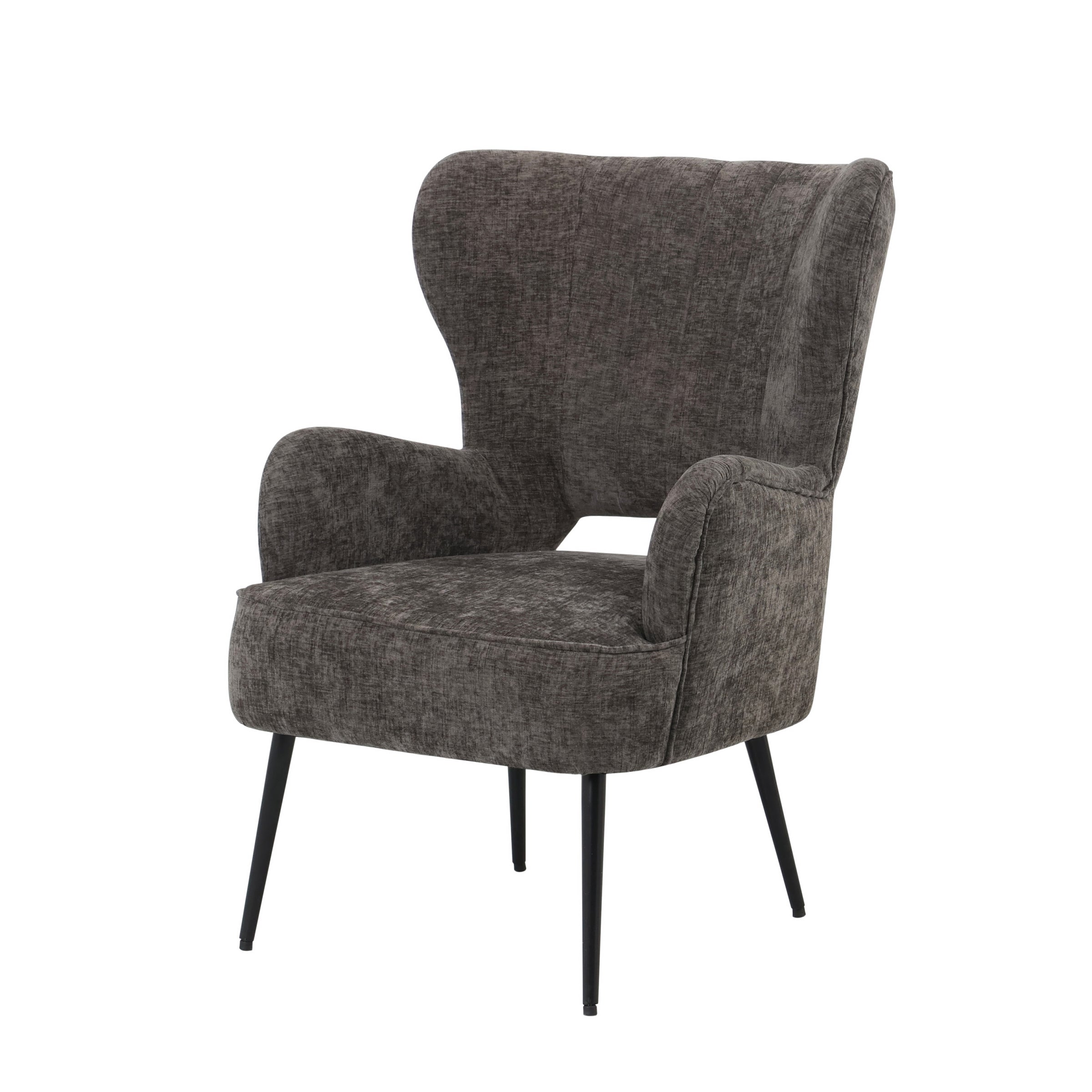 Elevate your interior with this sleek modern wingback accent chair. Upholstered in a richly textured grey fabric, its high back and sculpted arms provide both style and support. Set on slender black metal legs, the chair exudes a minimalist charm that suits contemporary, mid-century, or Scandinavian spaces alike. Whether you're reading, relaxing, or entertaining, this chair adds a touch of refined comfort to any room.
