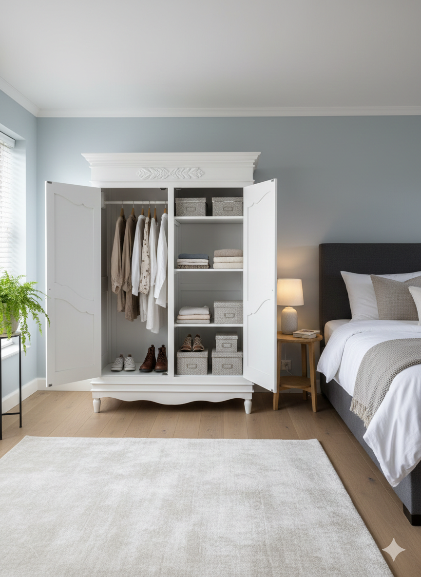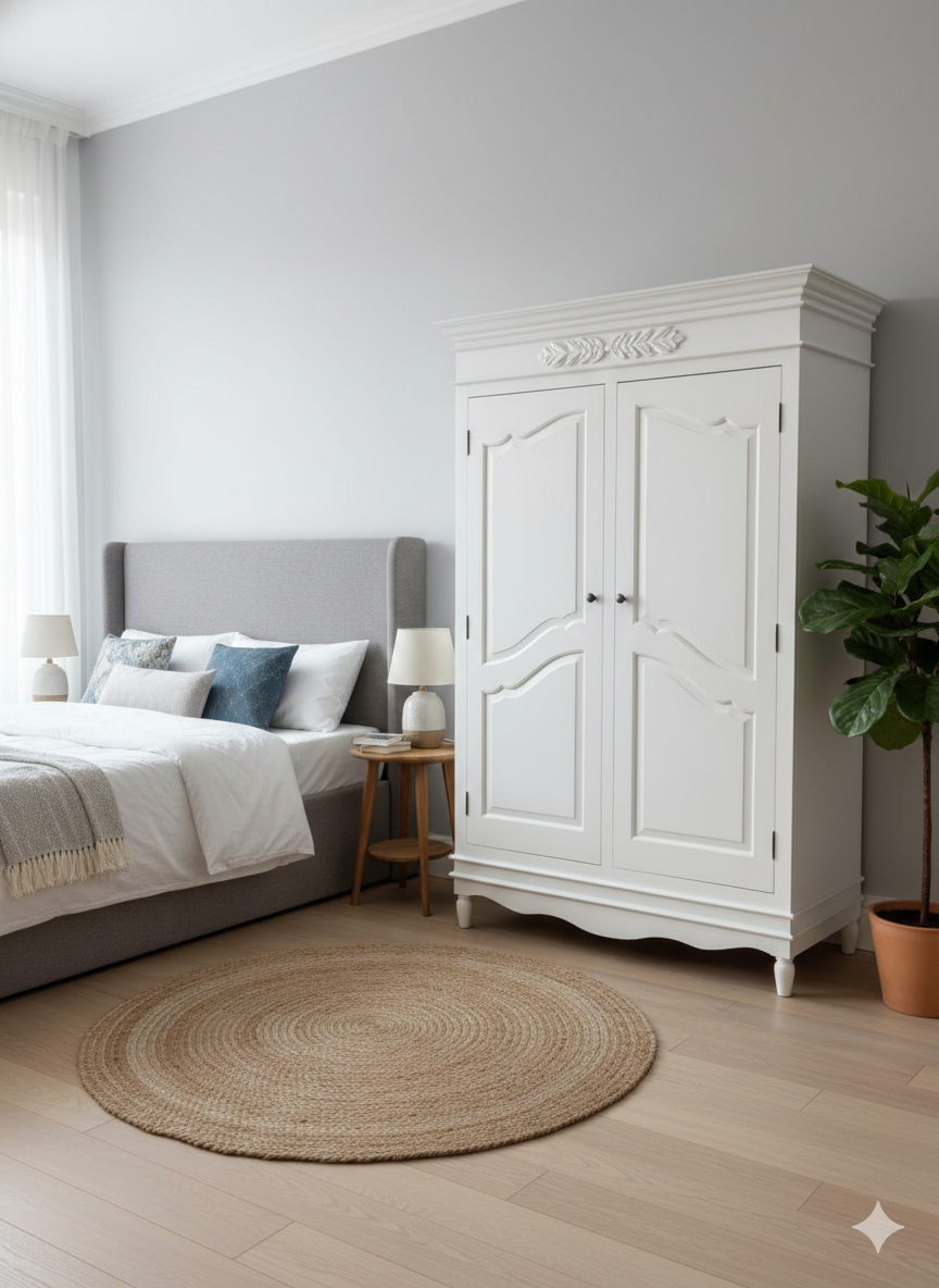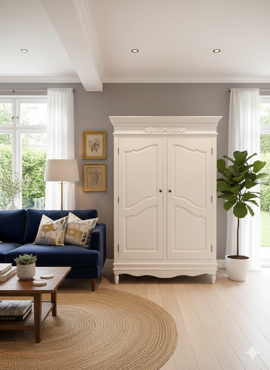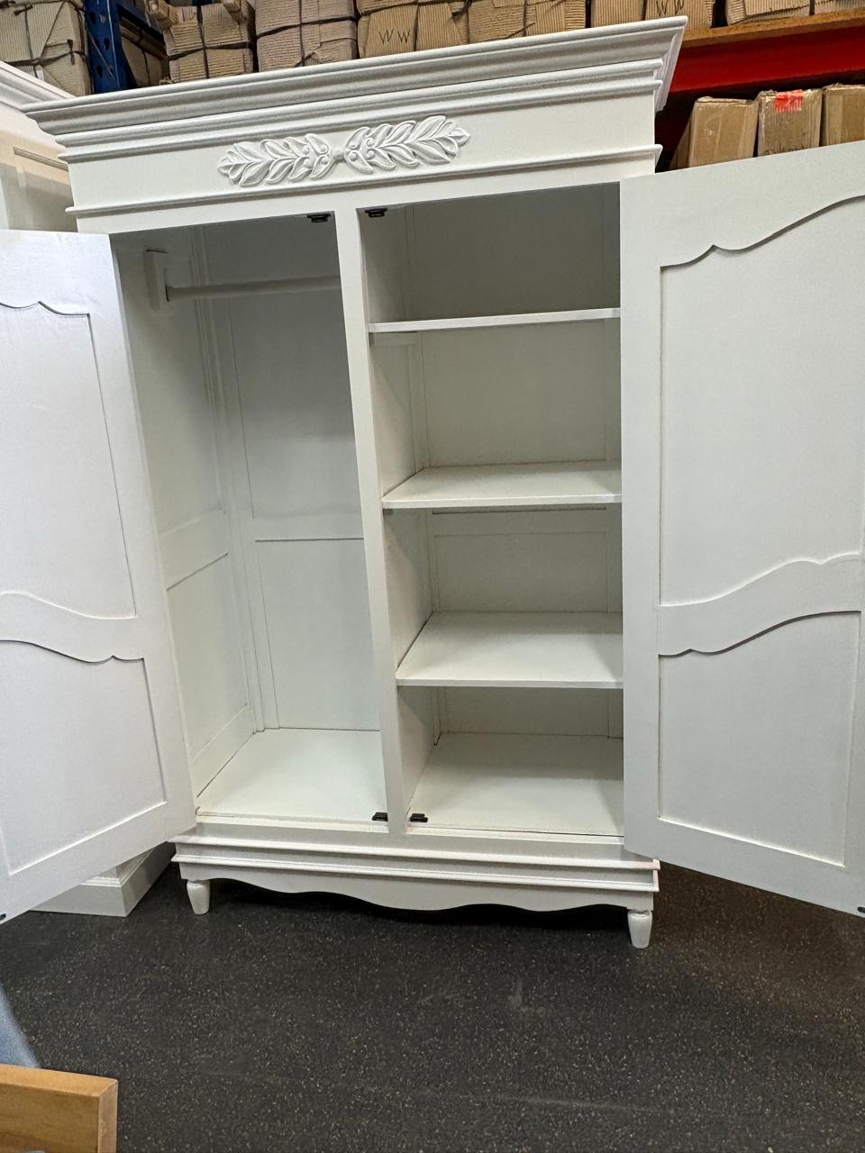 Bring timeless elegance and practical storage into your home with this beautifully crafted Wardrobe/ Classic White Wooden Cabinet. Designed with graceful curves and refined detailing, this piece adds a sophisticated charm that blends effortlessly with both modern and traditional interiors.