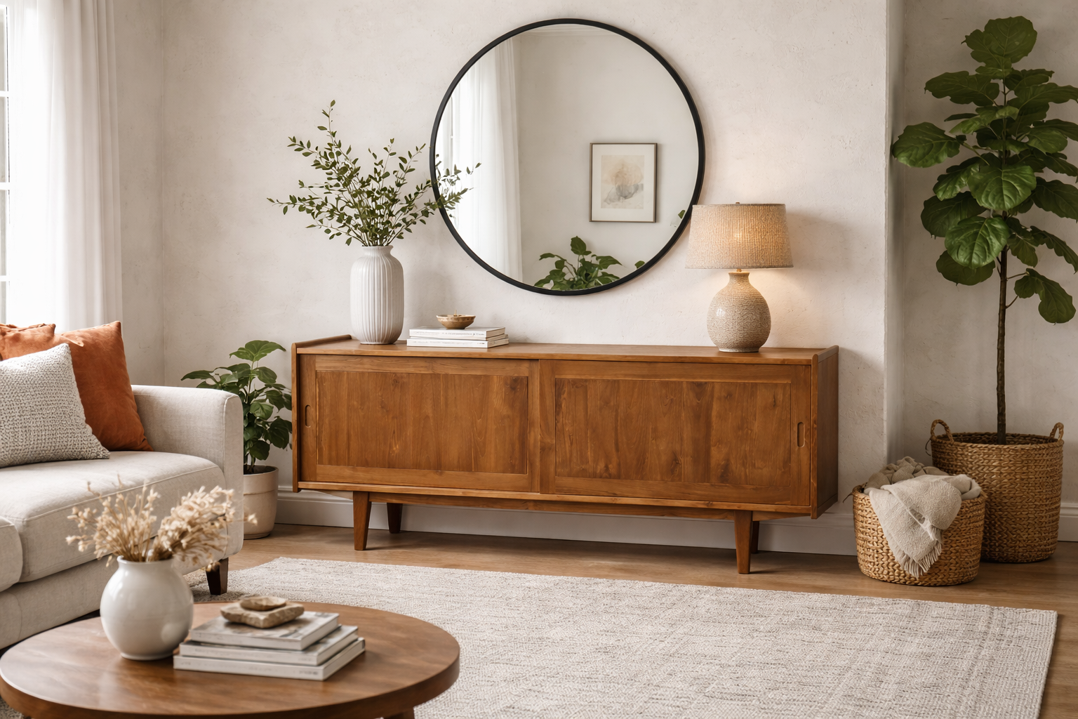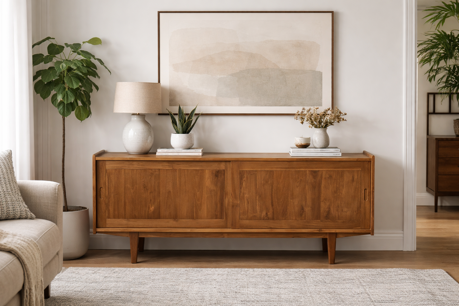 Bring timeless elegance and everyday functionality into your home with this beautifully crafted mid-century inspired sideboard. Designed with clean lines, warm wood tones, and tapered legs, this piece blends effortlessly into modern, Scandinavian, and classic interiors.