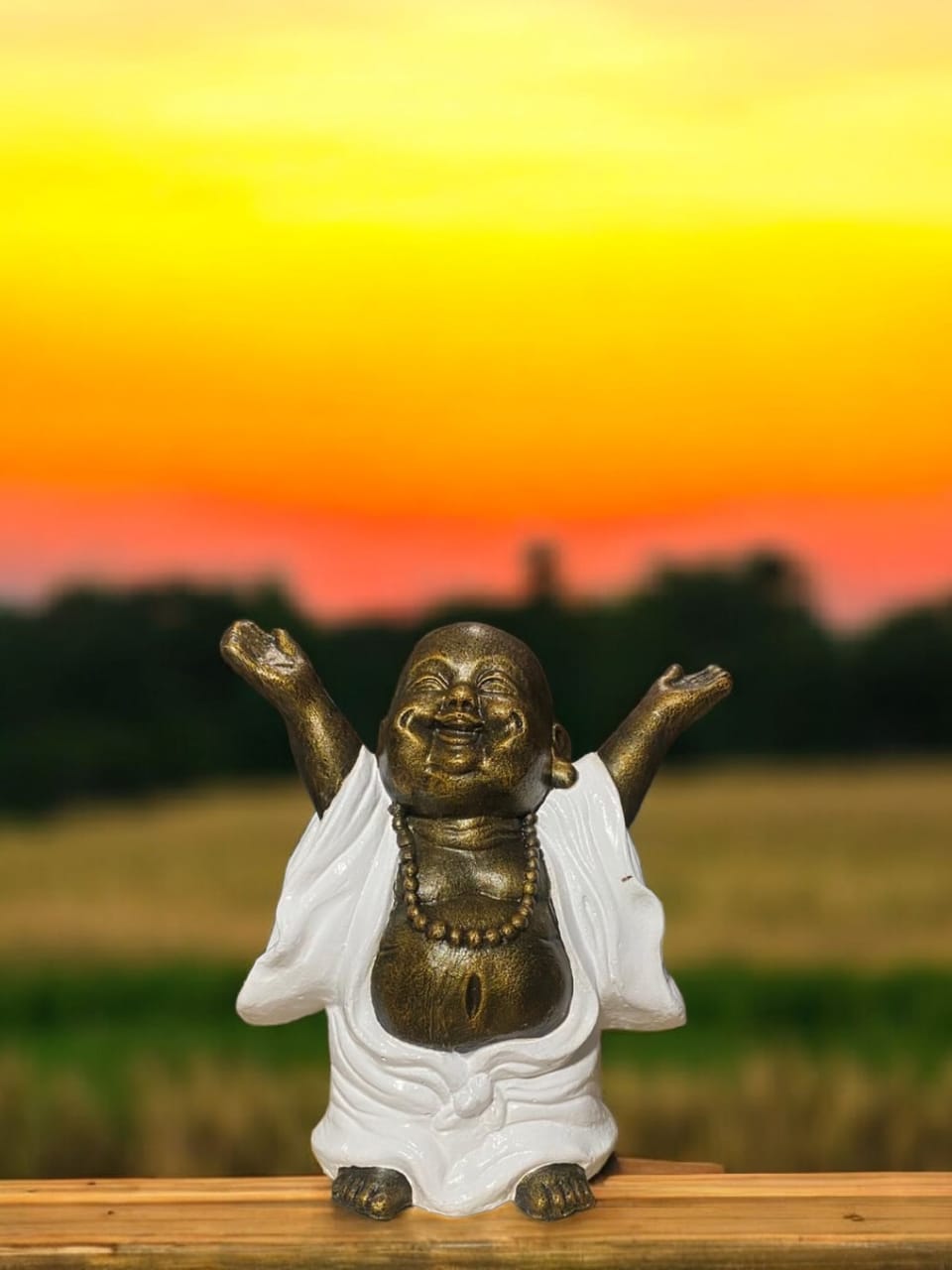 white & Gold Laughing Buddha – Hands Up Pose 40CM