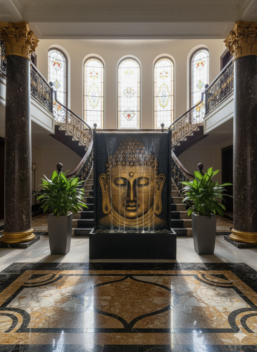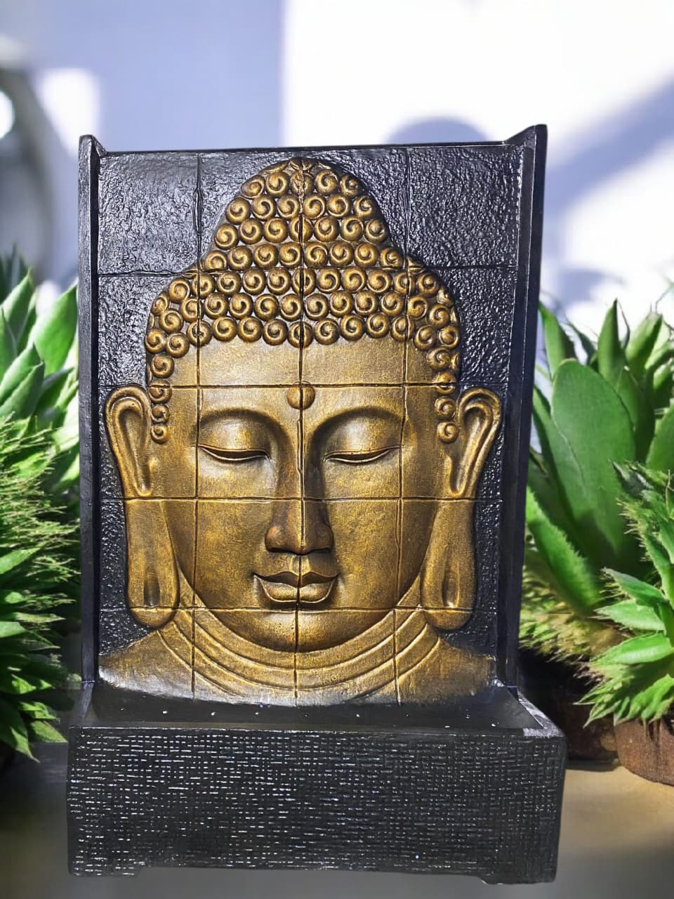 Bring peace, beauty, and positive energy into your home with this stunning Golden Buddha Wall Fountain. Crafted with exquisite detail, this piece features a serene Buddha face finished in antique gold against a textured black backdrop, creating a striking contrast that instantly elevates any interior décor.