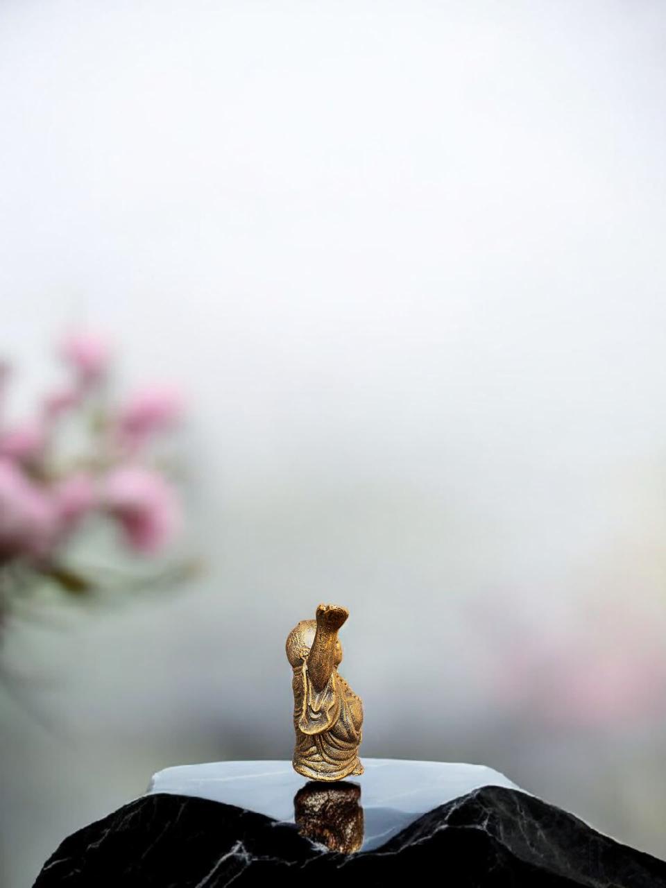 Finished in a radiant antique-gold tone, this mini Buddha adds a touch of charm and positivity to any room. Whether placed on a console, desk, shelf, or in your mandir, its cheerful expression instantly brightens the surroundings.