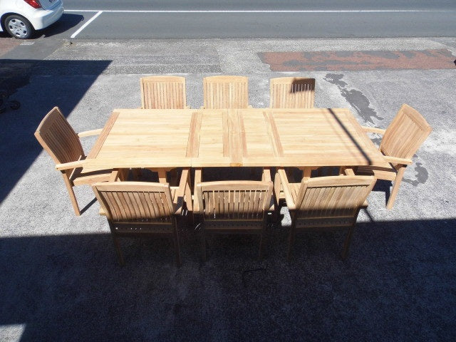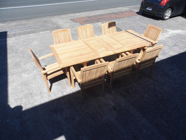 Rectangle Outdoor Teak Table & 8 Teak Chairs - Teak Wood - Outdoor Furniture - 180-240cms