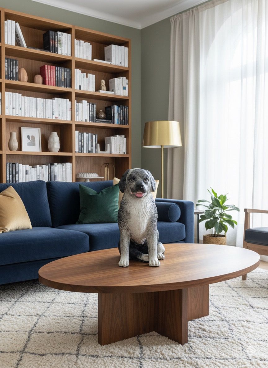 🐾 Hand-Painted Fibre-Cement Dog Sculpture – Modern Art Showpiece