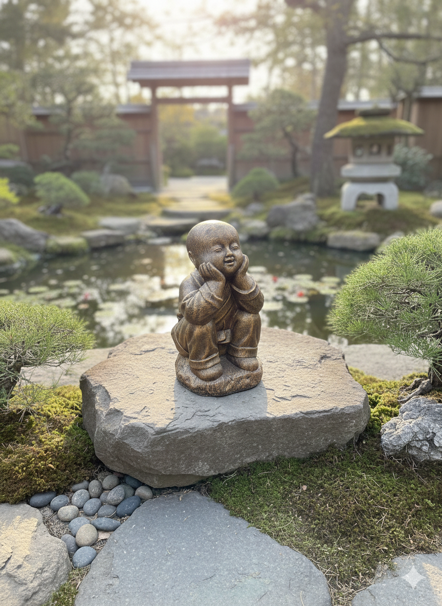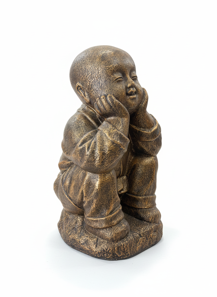 Finished in a classic antique bronze tone with a textured, handcrafted look, this statue blends effortlessly into both modern and traditional spaces. Its gentle expression and thoughtful posture make it a wonderful addition to meditation corners, living areas, gardens, or offices.
