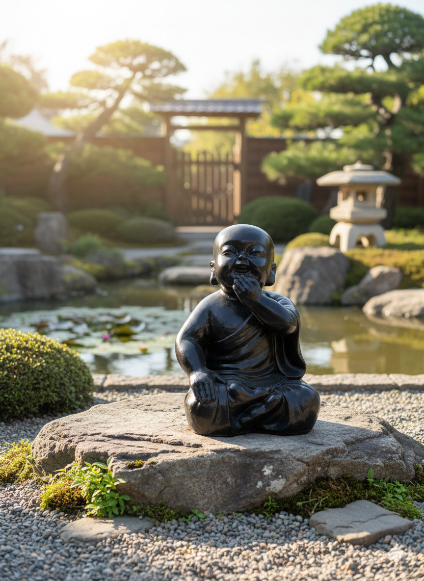 Create a calm and uplifting atmosphere with this beautifully crafted Joyful Monk Garden Statue. Featuring a gentle laughing expression with a hand-over-mouth pose, this sculpture symbolizes happiness, innocence, mindfulness, and inner peace.