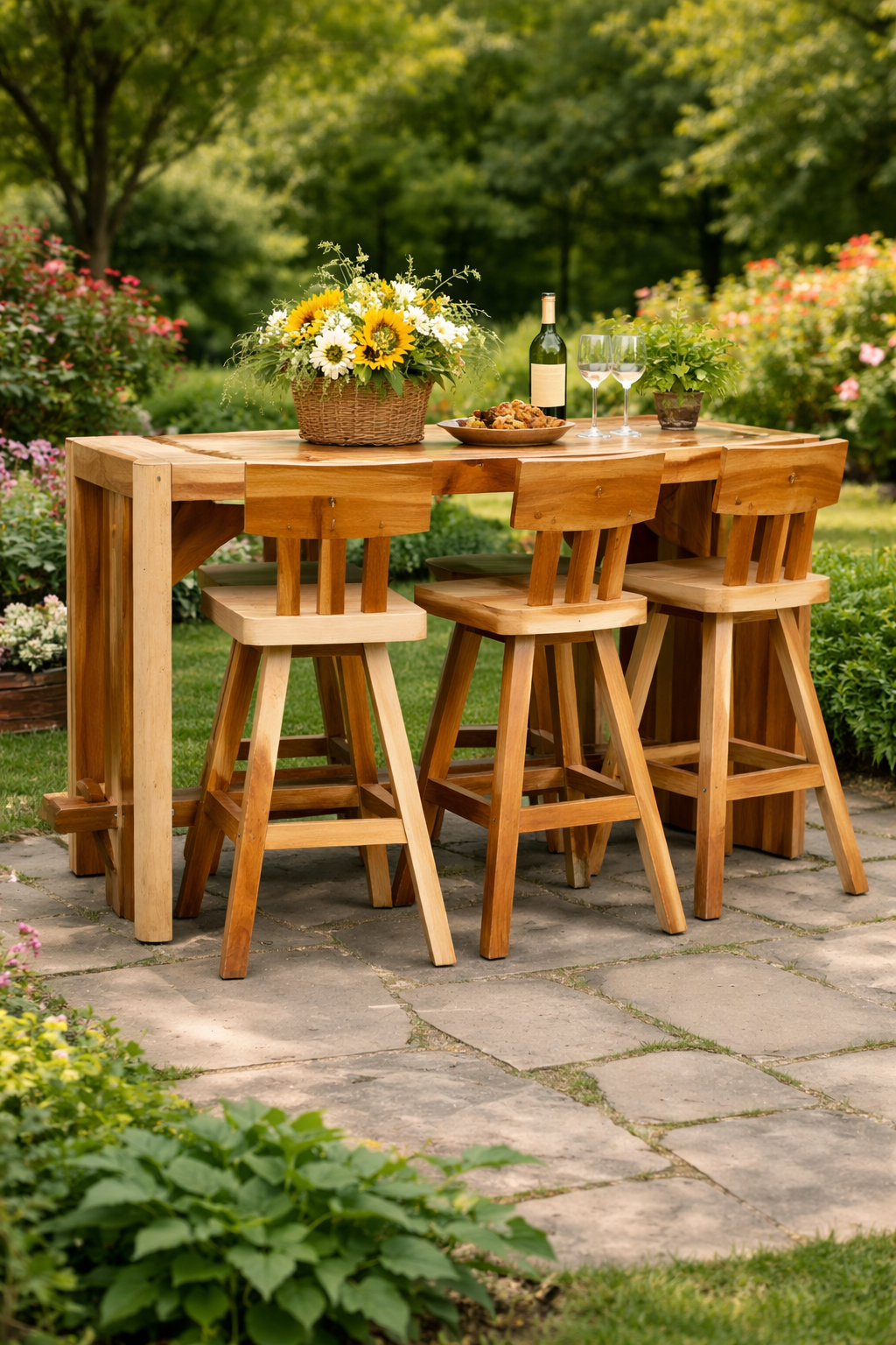 Rectangle Bar Leaner and high Stool - Suar Wood - Assembly Required